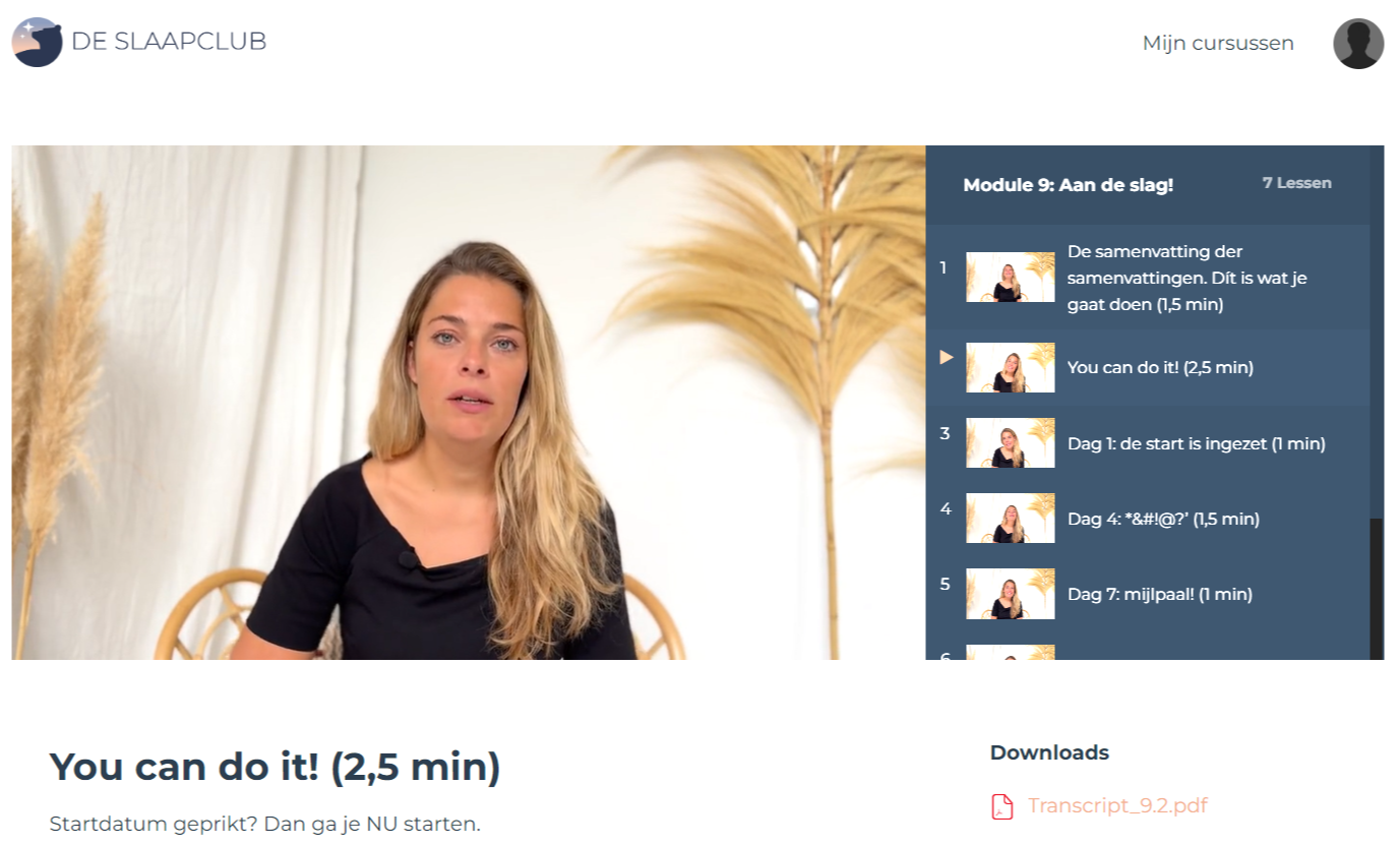 Bouw jouw cursussen in een mooie overzichtelijke omgeving. Maak interactie tussen cursisten en jezelf mogelijk. Met altijd inzicht in de voortgang van jouw cursisten ben jij altijd op de hoogte. Wil jij je cursus wekelijks of na een aantal dagen een klein stukje vrijgeven? Dat kan heel eenvoudig. En vergeet niet dat je alle knoppen in het Nederlands kunt zetten.